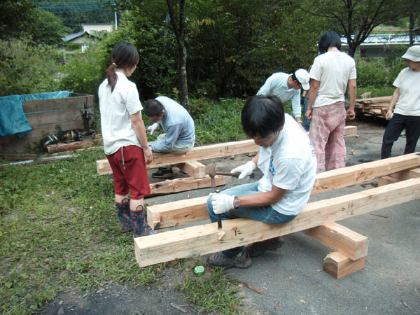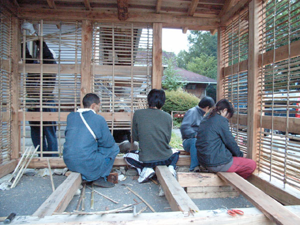 こんにちは。 鎌倉市のカジュ・アート・スペースです。 http://khaju.com このほど、以下の要領で日本家屋の哲学を学ぶワークショップを企画しましたので告知させてください。 どうぞ、ふるってご参加下さいね。 ちなみに、材料の柱や板は、このほどとうとう解体されてしまった、小町二町目の通称「鳩屋敷」から、解体業者さんのご厚意でいただけたものを使用します。 http://mixi.jp/view_diary.pl?id=318039146&owner_id=2466556 http://mixi.jp/view_diary.pl?id=321750729&owner_id=2466556 ==============================