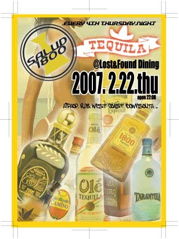 2007.2.25.THU@LOST&FOUND DINING SALUD1800 飲み放題付きイベント 22:00 OPEN DJ: NARU.KOGUSHI. 8MAN. BIGUPPER.YOKKE LIVEARTIST: BAZOO. DOUBLE SIXX. G-MA. C.S.G.BAN. G-BAZZ. WILLOW B. LA GLORIA.TOMO. ACE. GIZUMO. GRACE TONE. 千明. SOR 3000YEN(飲み放題料金付き)