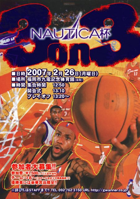 ハイ!!!!! またまたやっちゃいます!!!!!→ܫ← ●NAUTICA杯 第二回 3on3大会●を!!!!! 〜゜+。:.゜ヽ(*´∀`)ノ゜.:。+゜ すでに予約が11チーム決まってますので、お早めに!!!!! 質問等は、お気軽にお問い合わせ下さいねっ☆★☆ ●●NAUTICA福岡天神店 ?.【092−762−3150】●● もしくは、megu.までメッセを〜(○′∀`)/♪♫ こちらでもCheckできますっ♪♫ http://gwanner.co.jp/catalog/03.htm