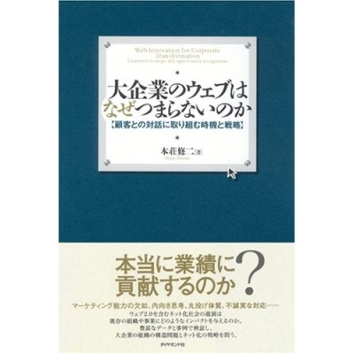 『大企業のウェブはなぜつまらないのか―顧客との対話に取り組む時機と戦略』(ダイヤモンド社) http://v.japan.cnet.com/blog/story/0,2000071498,000201c-0000018047o,00.htm を最近出版された本荘さんに、大企業にとってのWebの現状や今後についてお話しをいただきます。90分程度のセミナー後、懇親会となります。 企業サイトを制作されている方やWebコンサルタントの方々にはとても参考になるものです。 大企業マネジャーや広告代理店の方も、気軽にご参加下さい。 内容 ーーーーーーーーーーーーーーーーーーーーーーーーーーーーーー