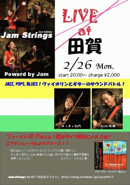 http://roppongi-taka.web.infoseek.co.jp/ ■2月26日(月)■■ 六本木 音楽居酒屋「田賀」(TAKA) start 20:00 charge \2,000 港区六本木7-12-23 tel03(3405)6938 ☆旧防衛庁向かいの「叙々苑」横の路地を入り、すぐ左折(元大八ラーメンの角)道なりに路地を入った左手。(大江戸線六本木駅から徒歩2〜3分、日比谷線「4a」出口から5〜6分) 名物「きのこ鍋」「おでん」で暖まりましょう(^O^)/