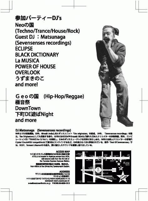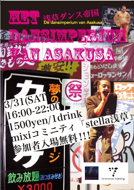 Stellaコミニティ参加者100人突破記念パーティー! このコミニティ参加者は入場無料!! 当日は更なる告知も!? ステラが好きな方々、ステラに興味あるけど来た事ない方含め、遊びましょう。 大気が悶えるほどのパーティーが浅草にはあります! Het dansimperium van Asakusa 浅草ダンス帝国@浅草Stella Asakusa Leading DanceEvent 3/31(SAT) 16:00-22:00 1500yen/1drink mixiコミニティ「Stella 浅草」参加者入場無料。 Neoの国 (Techno/Trance/House/Rock) Guest DJ Matsunaga (Sevensenses reco