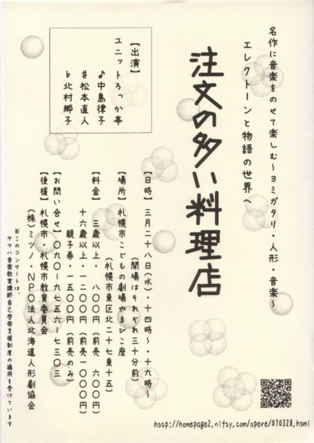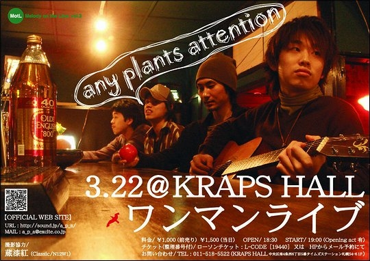 ・取り置きは「3/22ライブ、名前、枚数」を書いてメールで予約→a_p_a@excite.co.jp