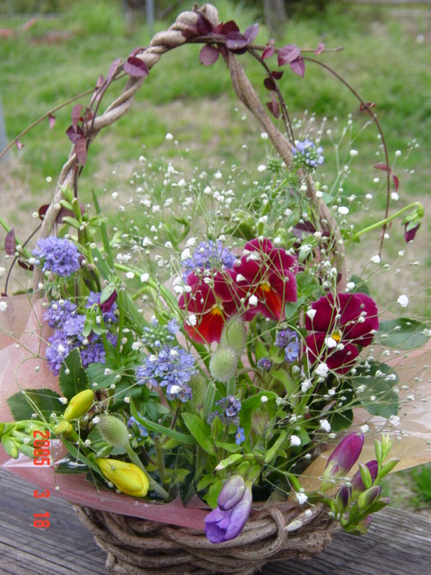 場所=和歌山県紀の川市貴志川町西山 ダイマル農園 ? 0736-64-3946 かご編み=1時間30分ぐらい 自分で編み上げたかごに 私が育てた 季節の草花をアレンジしませんか? アレンジ=30分ぐらい 自然素材のもつ癒しと 自分で作り上げる達成感を楽しんで頂きたいな〜 いつでも体験出来ますが かずらの準備が必要なので 前もって連絡して下さいねm(__)m かずら編み・アレンジフラワー +ケーキとお茶のおやつ付 2500円