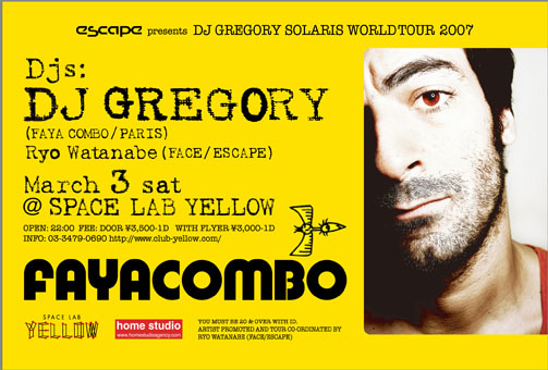 Africanismでの成功で、自らのレーベル[Faya Combo]を設立。ここ数年も「Joburg Theme」、「Solaris」、「S2」と大ヒット曲をリリースし、今やフランスではボブ・サンクラ−やディミトリ・フロム・パリス等と肩を並べる程の人気DJとなったグレゴリーが約2年ぶりに再来日を果たす。これからの時代をリードする注目すべきDJだけに絶対に聞き逃せない。
