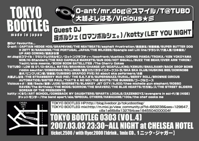 2007.03.03 23:30〜ALL NIGHT at CHELSEA HOTEL(http://www.chelseahotel.jp/top.htm)