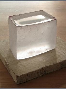 ボーッと光るガラスの家の形の作品で有名な方ですね。 不思議な存在感の作品が、とても印象的です。 美術館で見た作品はかなり大型でしたが、販売用は幾分小型化されて、手に届くお値段のようです。 (でも、22センチ四方サイズで50万円です。) http://www.ikedayanet.com/2933/ogida/oogitp.html http://www.angnet.com/objet/artist/ok-menu.html