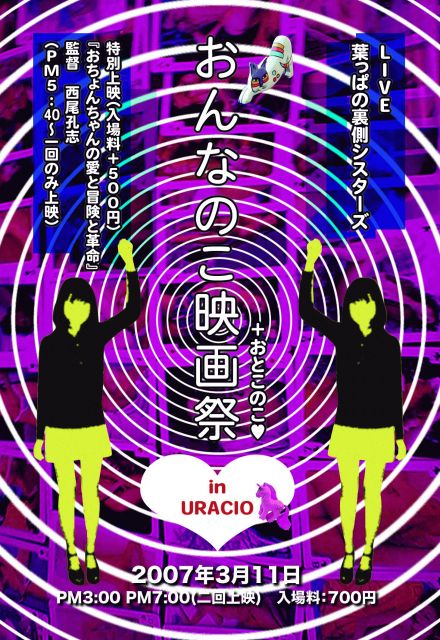 大阪でこんな上映会に参加します。 お近くの皆様是非遊びに来てください! 『おんなのこ映画祭』 日時:3月11日(日)3:00pm〜/7:00pm〜 (2回上映) 場所:カフェURACIO(CO2上映制作支援センター) 大阪市中央区西心斎橋2-18-6 アメリカ村三角公園の西隣、コンビニampmの2F 入場料:700円 上映作品 『ウサギ★ララBYE!』10分 学園ドラマ 監督●神農了愛(CO2第2回監督) 『コノ瞬間、無限。』10分 アートフィルム 監督●平岡香住a.k.a.カスミン 『残炎の候』15分 ドラマ