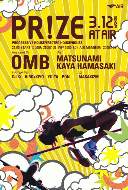 前回開催は多くのオーディエンスを沸かせ、ウィークデイとは思えない盛り上がりでハイクオリティーパーティーとなった"PRIZE"。 レジデントは海外のレーベルAudio Therapy(uk)Silver Planet(uk)などから多数のヒット作品をリリースし、現在は自身のレーベル"FRAME"からも新曲をリリースしたばかりのOMBが務める。 今回は"TRI-BUTE"、"光響"を中心に活動し、その選曲センス、ダンスミュージックへの幅広い見識によって評価を確立してきたMATSUNAMIが参戦。 前回"PRIZE"のオープニングアクトを勤め、フロアライクな選曲が好評だったkaya hamas