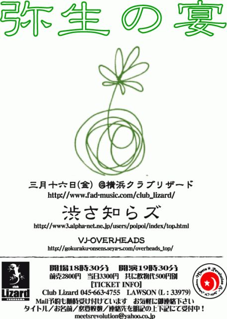 ¤¨¤¨¤¸¤ã¤Ê¤¤¤«¡¡¤òºÆ¸½¤¹¤ë¤è¤¦¤Ê¡¡ÆüËܤòÂåɽ¤¹¤ë À¤³¦Ãæ¤Î²»¤ò¶Å½Ì¤¹¤ëFREE JAZZ GROUP¡Ø½Â¤µÃΤ饺¡Ù¤Î Åоì¤Ç¤¹¡ª¡ª¡ª ¾ÜºÙ¤Ï¢ ¹±Îã¤È¤Ê¤ê¤Þ¤·¤¿ MEETS¡úREVOLUTION prezents¤Î±ã¥·¥ê¡¼¥º¡ª º£²ó¤Ï£³¡¿£±£¶²Ú¤Î¶âÍËÆü¤Ë¡ÖÌïÀ¸¤Î±ã¡×¤Ç¤ªÆÏ¤±¤·¤Þ¤¹ ÁðÌÚ¤â²ê¿á¤¯¤³¤Îµ¨Àá¤Ë¡¡ À¤³¦Ãæ¤Î²»¤ò¶Å½Ì¤·¤¿ÆüËܤòÂåɽ¤¹¤ëFREE JAZZ GROUP ¡Ö½Â¤µÃΤ饺¡×¤È ¤¢¤é¤æ¤ë²ñ¾ì¤ò²Ú¤ä¤«¤Ë¿§ÉÕ¤±¤ë VJ CREW¡ÖOVERHEADS¡×¤Ç¤ªÆÏ¤±¤·¤Þ¤¹ ¹ÔÊý¤ÏÃΤ줺¤È¤â¡¡¤¹¤Æ¤¤Ê°ìÌë¤Ë¤Ê¤ë¤³¤È¤Ï¡¡´Ö°ã¤¤¤Ê¤·¡ª ½Â¤µ ¤È VJ OVERHEADS¤Î¥³¥é¥Ü¥ì¡¼¥·¥ç¥ó¤ò¤ª¸«¤Î