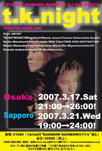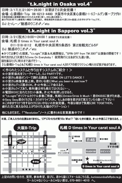 “t.k.night”札幌開催のお知らせです。