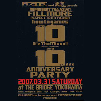 DJ FILLMOREの10周年とHOW TO GAMES PART 10のリリースパーティーをかねたイベントが有ります。
