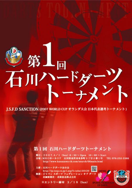 8:30〜開場 試合開始10:00〜 <<ゲーム内容>> オープン・シングルス501 レディース・シングルス501 オープン・ダブルス501 (501ストレートスタート・ダブルフィニッシュ、ベストオブ3) エントリー締め切り 3/18まで(ペアを確定させてエントリーください。)