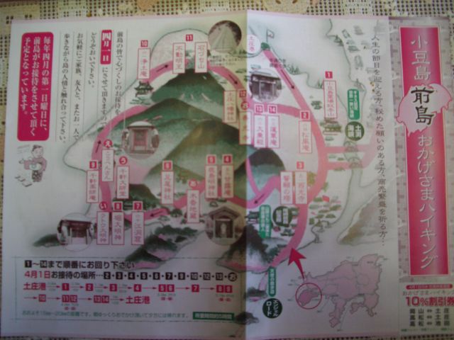 小豆島の前島の霊場をお参りしながらのハイキングです 申込み不要で何処から初めて終わるかは自由です 9ヶ所でお接待があります地元の人などとふれあいながら わいわいおしゃべりや景色を楽しみながら回ります 1周やく5時間です