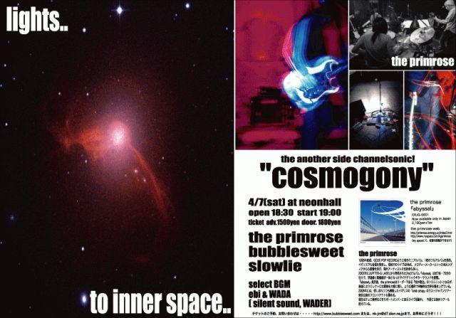 next live=4/7(sat) at 長野 neonhall 「cosmogony “the another side channel sonic” 」