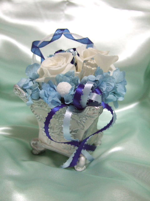 自由ヶ丘駅から徒歩1分のギャラリーone'sの企画展 【アートビレッジ】 HP: http://www11.ocn.ne.jp/~one.s/ 4月6日〜8日まで こちらで展示販売会を行います。 このうち 7日・8日 の午後1時〜(約1時間半) プリザーブドフラワーの体験レッスンを行います。 スクールに通ってみたいけど・・・や 1度やってみたいなと思ってるんだけど・・・ と言う方!ぜひ お気軽にどうぞ♪(〃^∇^) 作品は画像の作品です。 4月7日 左画像のケーキアレンジ ¥2500 8日 中