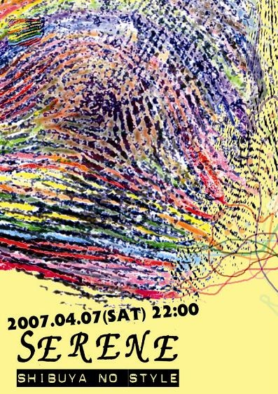 どうも!マンナです。 ひでき&さなちゃんパーリーはおつかれさん! 告知失礼します。。 Sereneも無事に3回目を迎えることができそうです! みなさんも是非遊びに来て下さい! ->あらち、くに、猿、マンナが喜びます。 クラブ出て3階のバーとも出入り自由なので ついでに同窓会なんて企画してみたらよいんじゃ ないでしょうか???? ↓今回はプロも交えてますヨ! Serene vol.3 -> (http://www.serene-music.com/) 2007.4.7(sat) 22:00 - 05:00 Door ?2000 2Drink NOSTYLE@SHIBUYA -> (http://dp43053767.lolipop.jp/)