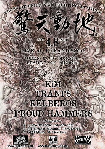 ¡Ø¶ÃŷưÃÏ Vol.5¡Ù Âçºå ½½»° FANDANGO ½Ð±é¡§ KiM(µþÅÔ) TRANPS(·²ÇÏ) KELBEROS(Âçºå) PROUD HAMMERS(ϲλ³) OPEN 18:00 START 19:00 Á°Çä 1,500±ß ÅöÆü 2,000±ß ¢¨SKIN/PUNK/PSYCHOBILYÆþ¤êÍð¤ì¤Æ¤Î¥¤¥Ù¥ó¥È¡¢Á´¤Æ¤Î½Ð±é¥Ð¥ó¥É¤¬¥¦¥Ã¥É¥Ù¡¼¥¹¤Ç¤¹¡ª