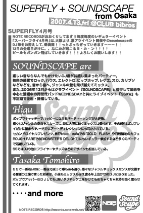 ということで、もう一度、NOTE RECORDSレギュラーイベントSUPERFLY(もしかしたら、この名前もうやめるかも!!)