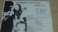 ♡monophonic & shin funase quartet Live♡ voice:sao guitar:舟瀬新一郎 piano:東狐哲哉 bass:武田悟 drums:サミー岡倉 4/14 (sat) 富山アーティスト 富山市中央通り2−4−21 ?076−492−2300 19:00open/19:30start チケット1500yen/1drink 4/20 (Fri) 高岡 UP TIGHT 高岡市新横町1249-2 ファーストインビル ?0766−28−9677 19:30open/20:00start チケット1500yen/1drink 4/22 (Sun) 金沢もっきりや 金沢市柿木畠3-6 ?076−231−0096 http://www.spacelan.ne.jp/~mokkiriy