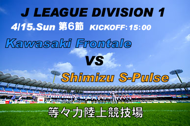 J LEAGUE DIVISION 1 第6節 川崎フロンターレ VS 清水エスパルス ■開催日:4月15日(日) ■開催地:等々力陸上競技場 ■KICKOFF:15:00 ■収容人数:25,000人 ■住所:神奈川県川崎市中原区等々力1-1