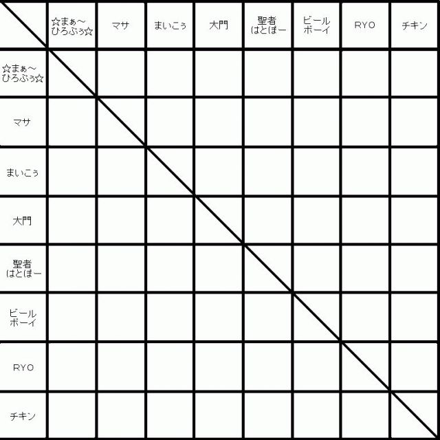 ラムジー学園ダーツ部から名乗り出た本気モードの8名でガチンコ総当たり戦を行ないます! 28試合を上記のとおり3日間かけて行ないます(3日かかんないかも汗)。 8名の方々は、参加ボタンを押して頂くとともに都合の悪い日があれば申し出てください。 ご協力をお願いします。 皆さん,最高のポテンシャルで試合に挑めるよう頑張りましょう♪ ★ルール★ ・ゲームは501&スタンダード・クリケットのメドレーで勝負 ・ノーハンディ ・順位を円滑に決定するため、各試合に次のようなポイント制を導入します↓ ☆501