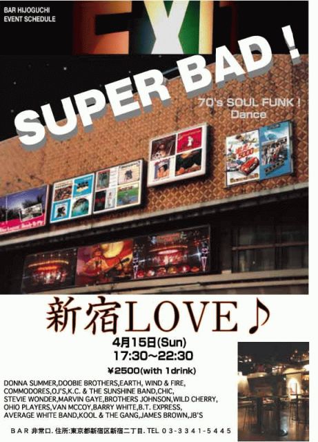 新宿ケントスファンの方々なら、お馴染み、又、リアル タイムを知らない若い方々でも、曲名、グループ名は 知らずとも、なんとなく聴き覚えある楽曲の数々。 赤坂、六本木は勿論!、新宿はゲット、トレビ、ポップ、 V-ONE 、Q & B、アップルハウス、ブラックシープ、 チェスターバリ−、ミルキーウェイ等々で70年代リアルに 流れていた不朽の名曲の数々を、都内でライブ活動中の k-unitのバンマス&ギタープレイヤーとして恥る事なく、 自信を持って!、今宵はDJとしてお送りするFUNKYで、 今は(笑)節度と品格ある大人の為の、