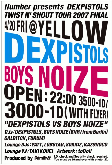 DJs: DEXPISTOLS, BOYS NOIZE(BNR/from Berlin), GALBITCH, FURUMI