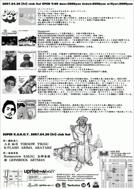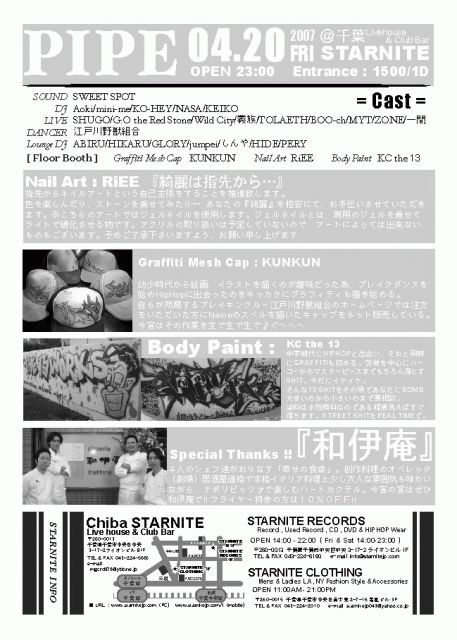2007年04月20日 (OPEN/24:00〜??? ADM:\2500/2d (¥1500/1d BEFORE 1:00))