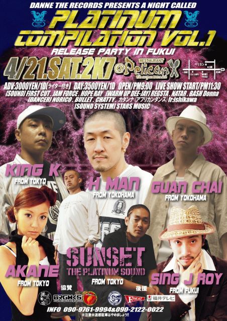 去年の12月に発売されたSUNSETのPLATINUM COMPILATION VOL,1のRELEASE PARTYが福井にやってきます!!