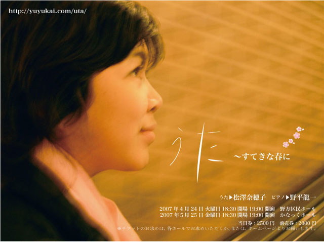 松澤奈穂子はぼくの妹です。 http://mixi.jp/show_friend.pl?id=9491461 松浦律子先生のもとで日本歌曲を勉強しています。 中学生のころから大人の人に交じって演奏もしていました。 今は、3児の母。 子育てで中断していた演奏活動を、再開することになりました。ご案内させてください。 昔、まだ20代だったころ。 妹は、高校生か、高校終わったばかりかな、、 知り合いに頼まれて老人ホームで童謡、唱歌、日本歌曲の演奏をしたことがあります。 知らない人ばかりで、、、緊張したのですが、夢中だったのを覚えています。