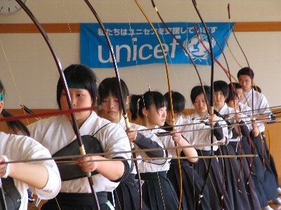 日時:平成19年4月29日(日) 受付:午前8:20〜8:50 開会式:午前9:00 閉会式:16:00(予定) 会場:福井県立武道館弓道場(福井市三ツ屋8−1−1) 主催:弓と地球を愛する仲間たち 主管:北陸中学校・高等学校弓道部 北陸高校弓道部OB会 競技:すべて立射。個人の部と団体の部があります。 趣旨:(財)日本ユニセフ協会の募金活動に協力する。 バリアフリーの弓道大会である。所属、年齢の垣根を越えて弓道に親しむ者同士の交友を深める。 対象:県内外を問わず、本大会