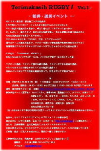 「我らが体育会系サラリーマン」コミュニティにご参加の皆さん このたび下記の通りイベントを開催いたしますので、お知らせいたします。 5月にインドネシアへ赴任することになった私の後輩、Mくんを送別する意味合いもこめて インドネシア語で「ありがとう」を意味する「Terimakasih」(トゥリマカシー)をイベント名に掲げました。 その名も「Terimakasih RUGBY! Vol.1」 しかし、ただの送別会イベントではありません!! ◆ラグビーをはじめ、スポーツに打ち込んでいる学生の皆さん 社会に出てからの不安を抱えたり、就職活動に