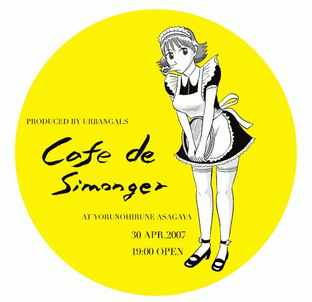 河井さんの提案で、なにやら妙なイベントをすることになってしまいました。 以下会場である「よるのひるね」さんのHPより引用。 アーバンギャルズ プロデュース カフェ・ド・サイモンガー(仮) 4月30日(月)19:00開場 前売(予約)2000円1ドリンク付 アーバンギャルズの面々と、ともに飲み、語り、笑い、歌う、秘密のカフェ! 秘密の曲もいっぱい聞けるかも? (注・当日、アーバンギャルズのパフォーマンスはございません。) 出演/河井克夫、鳥羽ジャングル、サイモンガー(アーバンギャルズ) というわけで、既によるのひ