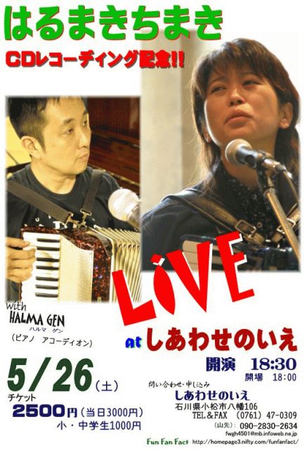 24日にレコーディングが終了。その旬な気持ちの二人が、しあわせのいえでLIVEを行います。みんなで一緒にお祝いをしましょう。