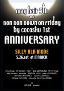 告知失礼します。 ~mag hair 5th & DON DON DOWN ON FRIDAY 1th ANNIVERSARY~ SILLY ALA MODE 5.26(sat) @ MANIER TICKET 2000Y(1D) DOOR 2500Y(1D) OPEN/START 19:00〜5:00 DJ/LIVE tiit(cocoshu) sinya(mag hair) listen Bob(LOVEBUZZ) yuka(LOVEBUZZ) M.H.R(mag hair) keiji(cocoshu) corosuke(INTERBAL) ten-GK27 feat.MC Bing(KRUMNEZ) coichi(LOVEBUZZ) 3000NDL(AVIL) AQ beat(RJT.KRS) nel poshe(SILLY ALA MODE) VJ 四季坊主 / showten 石川県金沢市笠舞にあるhair salon『mag