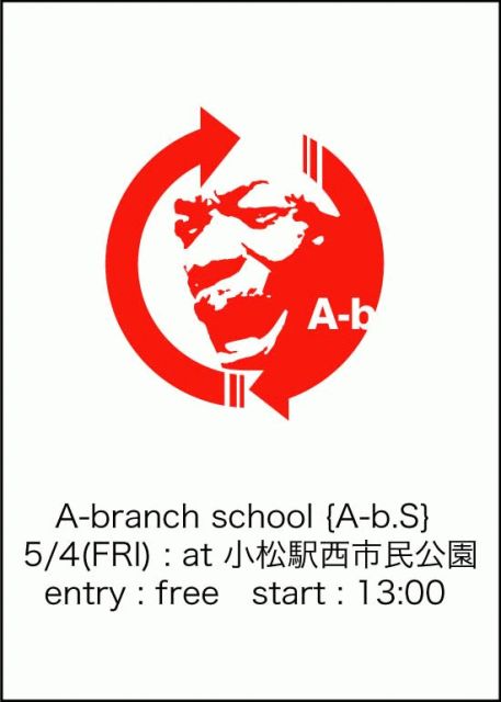 A-branch school {A-b.S} 5/4(FRI) : at 小松駅西市民公園 entry : free start : 13:00 ホント急なのですが久しぶりに開きたいと思います。A-b.S. このGWご予定が無い方、是非ご参加の方宜しくお願いします。 内容としましては初心者レッスン、中級者レッスン、フリージャムです。 のんびりBMX FLATLANDを楽しみましょう。