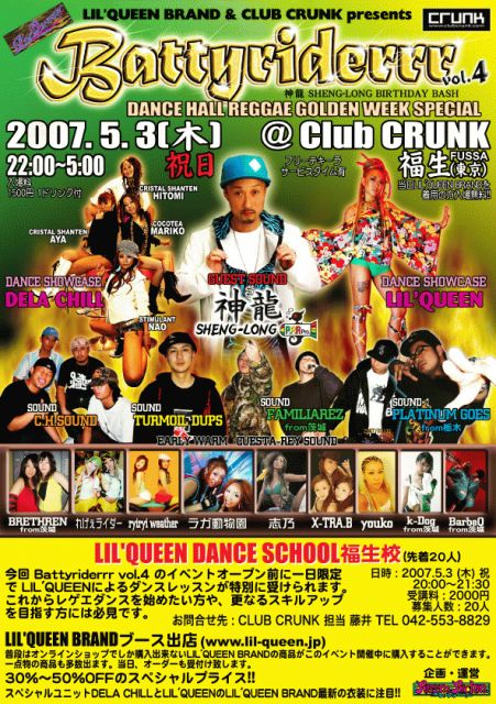 さて、今回のGUEST SOUNDはというと、あのMIX CD「DANCE HALL PLANET 1,2」をや「HERB GARDEN」、アーティストの方ではCHEE「VOICE OF CHEE」や今では定番のガンジャチューンCHEHON「みどり」のリリースなどさまざまな