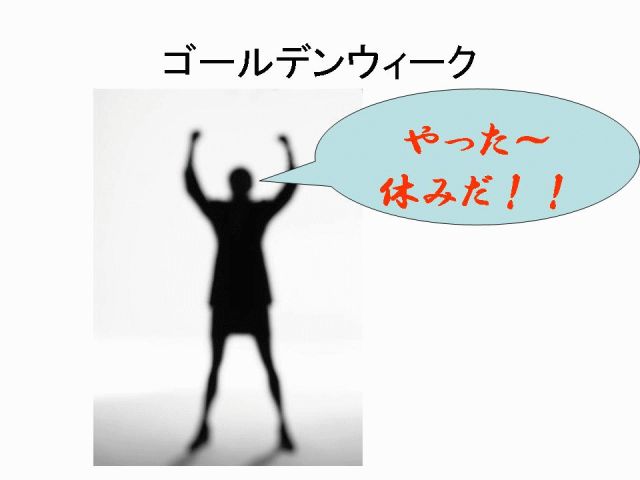 黄金週間がいよいよやってまいります!! みなさん!何か計画は立てておりますか? 去年は私、はに○一家と一緒にやりましたがなかなか楽しかったですよ!! その楽しさを是非皆さんと一緒に!!ってなわけでイベントを立てることにしました!! さーみんな!!ふるって参加してください!! 日程はこのままだとグダグダになりそうだから決めました!! みんなで集まるのは5月4日にします!! 予定を皆さん調整して参加してくれい!! ちなみに俺は6,7日以外は連休中はいつでも良くてよ!! 個人的に来たい人は接待しますよ!