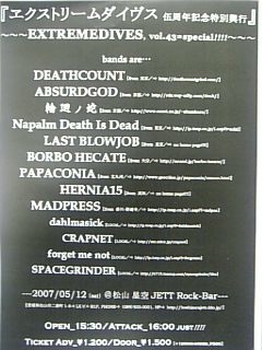 スペヱスグラインダー爆走企画“エクストリームダイヴス伍周年記念特別興行”遂に全出演バンド出揃いました!!!!(大分高城より、“VISCERA INFEST”緊急参戦!!!!)