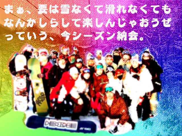 編集しました! 今シーズンお疲れ様でした! すべりの納会はもう済んだってことで ダメ人間の納会をしますww 一泊二日で滑らず BBQとか鍋とか釣りとかDSをやり続けるツアーに 変更になりました!! はっきり言って明日なので、 なんでもいきあたりばったりでやる予定♪ 重い板は置いていきましょうって会 予算はだいたい1.5マンから2マンくらいかな 宿だいたい6千円 車だいたい5千円 のみくい5千円 他何千円か。 ■お宿 : 森のロッジ村 ラボランドくろひめ http://www.laboland.jp/
