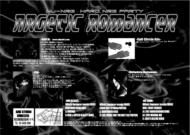 LAB4、PROTEUS等世界のアーティストを交え、自身も海外でのDJをこなし、6月にはNISHとのアナログリリースを控える世界のNRGetic Romancer GULDを核に、今回初のギター使用のLIVEを見せるFull Circle DJs、意識を超えた世界から狂気と無限の音を溢れ出すBetwixt&Between、暗黒という名のグルーヴを巻き起こす