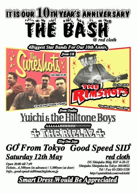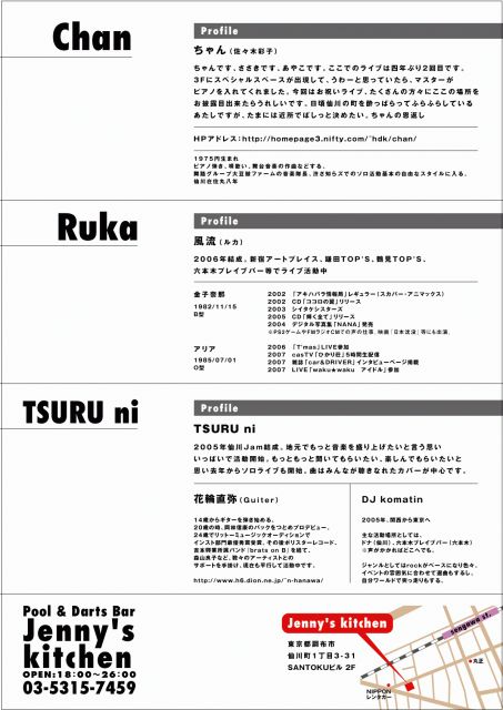 Tickets...4,500Yen (in advance) / 5,000yen(at door)