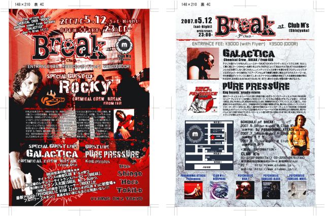 BREAK怒涛の第3弾☆☆☆サイトランスの殿堂CLUB M‘sが放つ第2土曜のレギュラーサイトランスパーティー「BREAK」。第3弾にはトランス大国ISREAL No.1 DJかつ、「BREAK」の総合プロデューサー 「ROCKY」が最新アルバム「PSYCHEDELIC HIGH 2」を引っさげCLUB M’sに初登場☆ フルパワーフルオン!! 見逃せない夜になること間違いなし!!!