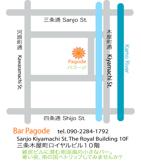 21:00 1000 yen パゴージ: 三条木屋町蛸薬師通り上るロイヤルビル10F