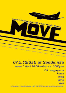 告知失礼致します。 House & Techno party 〜move〜 open / start 20:00 entrance 1,000yen DJ : kagayama / kuwa / meg / aya / junji バキバキに踊ってください! よろしくお願いします。