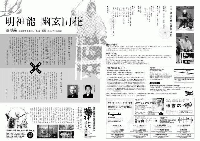 こんなんありまーす! 日本の伝統文化に浸りたい方ぜひぃ! 神田明神 奉納薪能 第5回記念公演 -神田の杜に自然音響を再現- 日時: 5月14日(月)午後6:30開演 場所: 神田明神社殿前特設舞台 最寄駅: 御茶ノ水駅 初めての人から海外の方までわかりやすい能楽舞台 そして都会の杜がサウンドシステムで自然の音につつまれます 。 狂言 痩松(yasematsu) 出演=野村万作 山賊が逆に脅され着物まで奪われる笑い話。 能 鉄輪(kanawa) 出演=遠藤勝實(金剛流) 丑の刻参りの物語、恐ろしい情念と陰