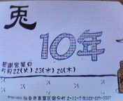 おくばせながら10周年イベントトピ作ってみました。 感謝営業日 5/22(火)、23(水)、24(木) 葉書の右上に鏡月1本10円と書いてあります(笑)
