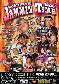 JamminTime vol5 UNRF 1Anv 今回のスペシャルゲスト!2007年出だしから二人ともドラゴン2k7やSKYHIGHなどその他コンピなどにも参加してるアーティストがむつに初上陸です! ダンサーは去年に引き続き2回目の参戦クリッシー、彼女達も各DVDで活躍中!こんだけの豪華な面子が集まるのはむつでは確実に初めて!日ごろお世話になってるむつのレゲエ好きやレゲエが気になってる皆さんへの感謝の気持ちを1周年記念パーティーとして皆さんにバカ騒ぎの場を準備しました!! @DIO PM9:00〜スタート チケット:¥2,50