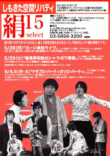 上々颱風のボーカル、西川郷子ソロプロジェクトでメイン伴奏、アレンジ、プロデュース等を担当し、無声映画の生伴奏、フラメンコギターによるソロ等で活躍中のギタリスト、小沢あき率いるavant pop jam band 「BYFAL」。